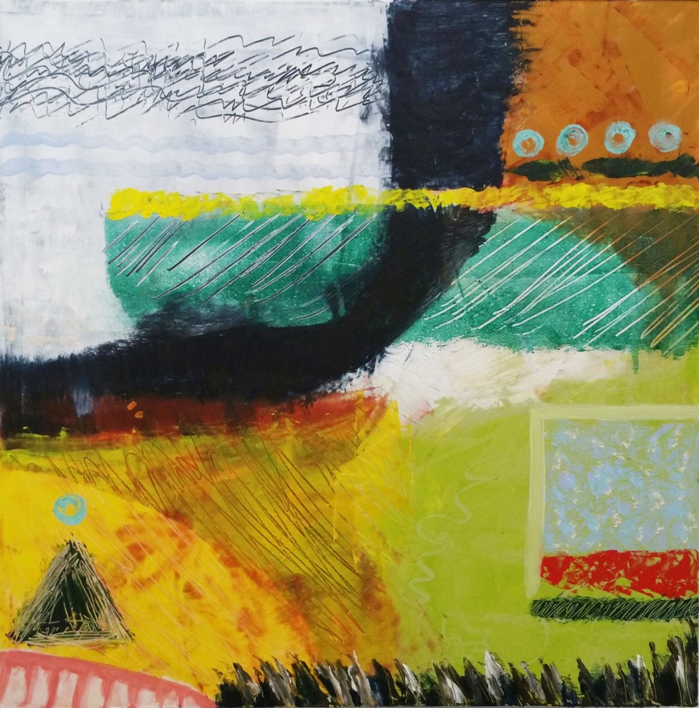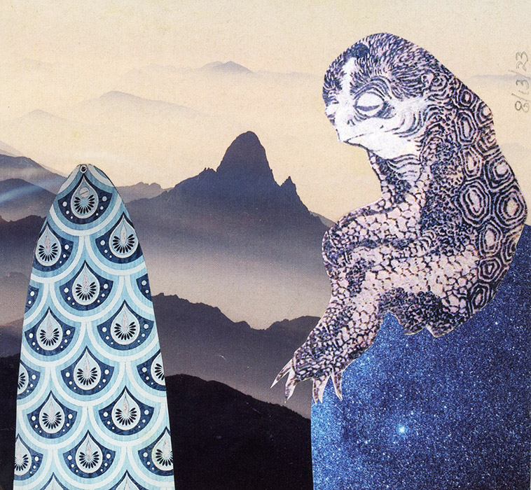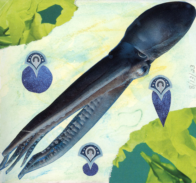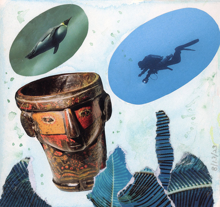Small mixed media collages (4.5″ x 5″) made from scraps left over from other projects:
