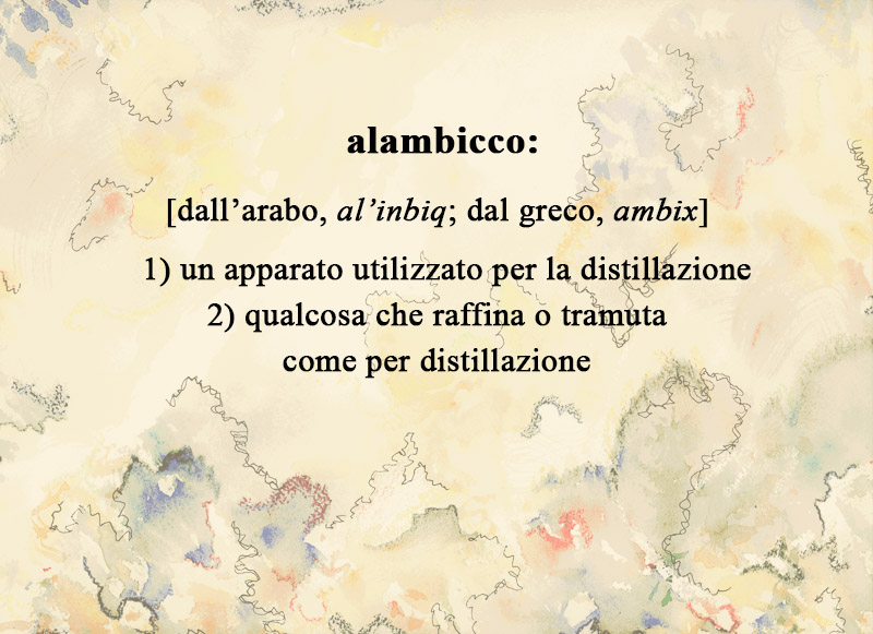 Studio Alembic è un luogo sia nel mondo reale della materialità che nel mondo reale dell’immaginazione. È un luogo dove le cose succedono in modi ordinari e non ordinari, dove si mescolano il gioco e gli sforzi seri, dove lo scopo senza scopo è ESSERE in qualsiasi modo incoraggi il sostegno e lo sviluppo dell’anima e dello spirito.