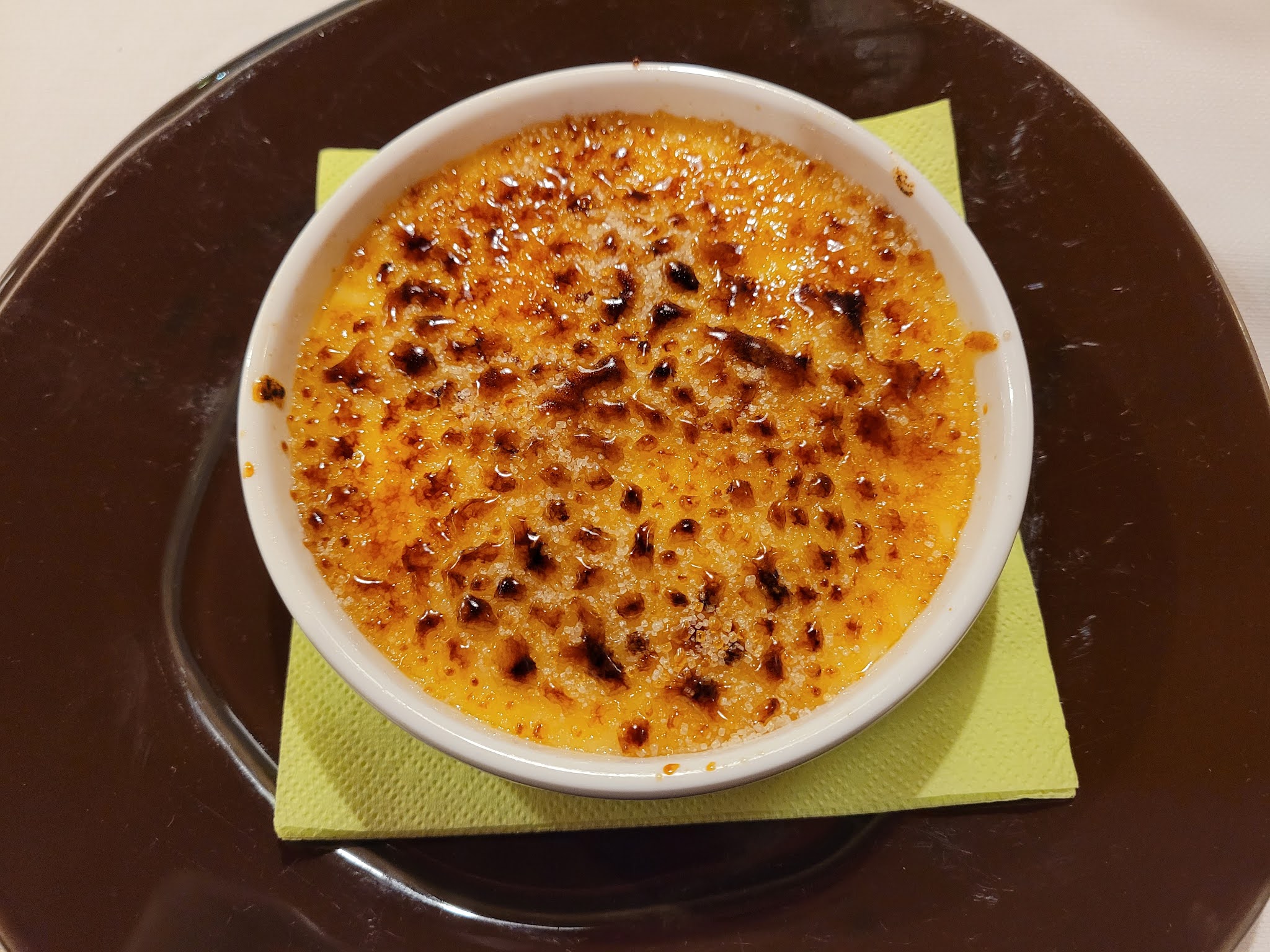 Dessert/Il dolce: crema catalana (similar to crème brulée, but more custardy / simile alla crème brulée ma più simile a una crema pasticcera)
