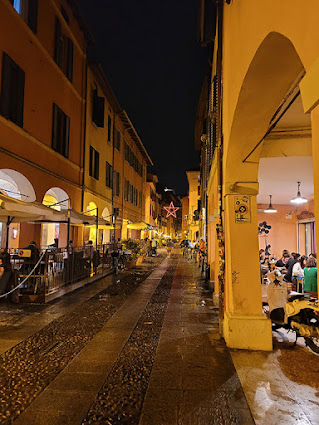 I arrived in Bologna yesterday evening, 10/3/21. The photos below are of my neighborhood at night. The street is called Via del Pratello. People of all ages out having dinner. Not one single person has his cell phone out!! People are looking at each other and chatting. The atmosphere is very relaxed.