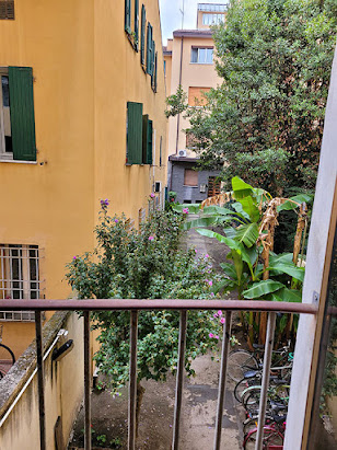 This is the little courtyard below my apartment in Bologna. There is even a banana tree (go figure). // Questo è il cortiletto sotto il mio appartamento a Bologna. C’è anche un banano (chissà?).