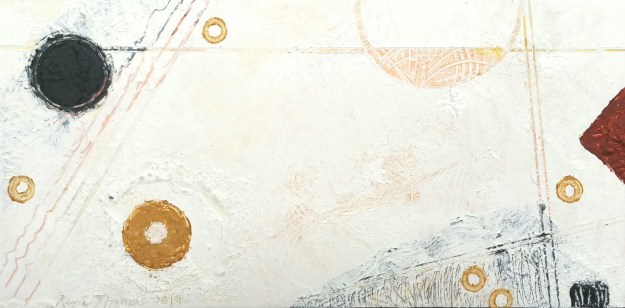 Adventures in Geometryland No, 3 cold wax & oil paint on panel 6″ x 12″ x 1.5″